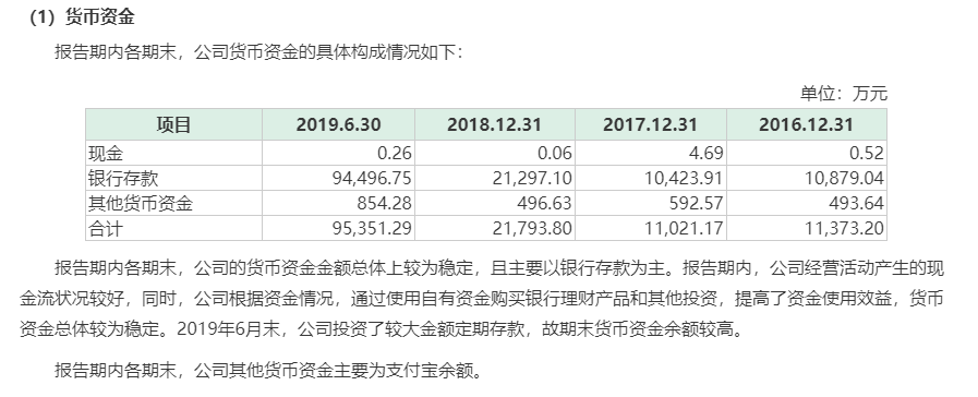 2016年末-2019年中,公牛集团账户上的货币资金分别为1.14亿元、1.1亿元、2.18亿元、9.54亿元。从负债端看,公牛集团2018年底有息负债为零,负债端占比最大的,是对上游供应商的应付账款。