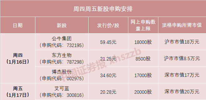 今日(1月16日),“巨无霸”京沪高铁上市,“大肉签”公牛集团打新。