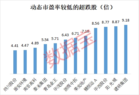 动态市盈率最低的是纳川股份,仅4.41倍。公司预计上半年净利润约3.79亿元至3.86亿元,同比增长超过14倍。主要因启源纳川处置股权影响公司净利润约3.72亿元。除纳川股份外,盾安环境、南京高科折算动态市盈率也不足5倍。17股中仅阳光城公布了半年报,动态市盈率为8.87倍。