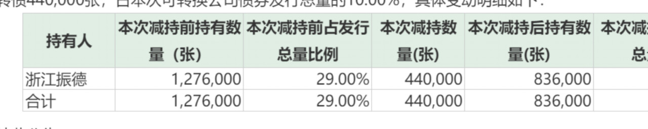 在最近一次减持2月4日减持之后,浙江振德还持有振德转债83.6万张。