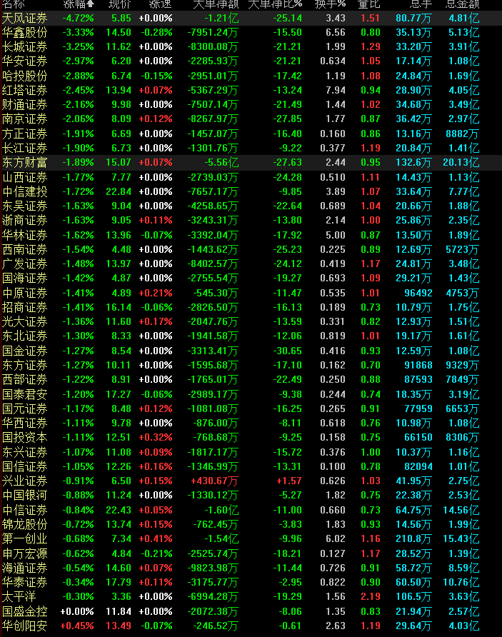 对于券商10月业绩,今日(11月6日)证券板块已有所反应。截至今日收盘,证券板块几乎全线漂绿,仅华创阳安一家微涨0.45%,整体跌幅为1.48%。