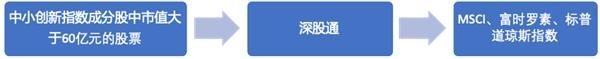 深股通则从深证成指、深证中小创新指数中选取市值不低于60亿元的成分股。与沪股通一样,被实施风险警示的深股也会被剔除。