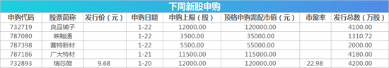 下周新股申购情况一览