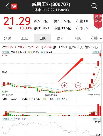 12月27日,威唐工业再度出现强势涨停,但成交量有所收窄。从12月20日至今,威唐工业刷出六天六板记录,区间涨幅超74%。