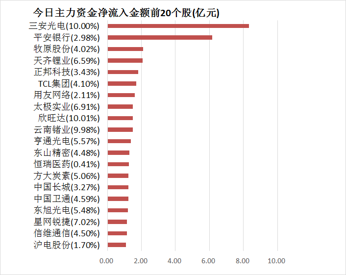 今日沪深两市主力资金开盘净流出83.67亿元,尾盘净流入36.7亿元,两市全天资金净流出58.62亿元。