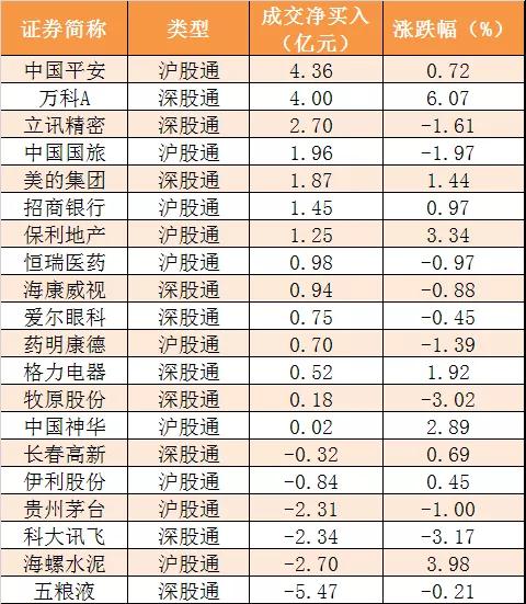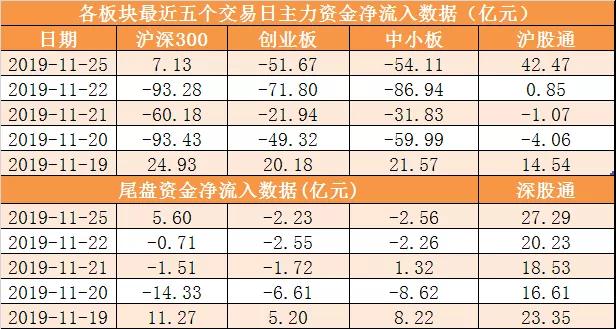 沪深300今日主力资金净流入7.13亿元,创业板净流出51.67亿元,中小板净流出54.11亿元。沪股通净流入42.47亿元,深股通净流入27.29亿元(本文中沪股通、深股通净流入额以当日已用额度来计,与成交净买入额略有差异,但表示的意义大体一致)。