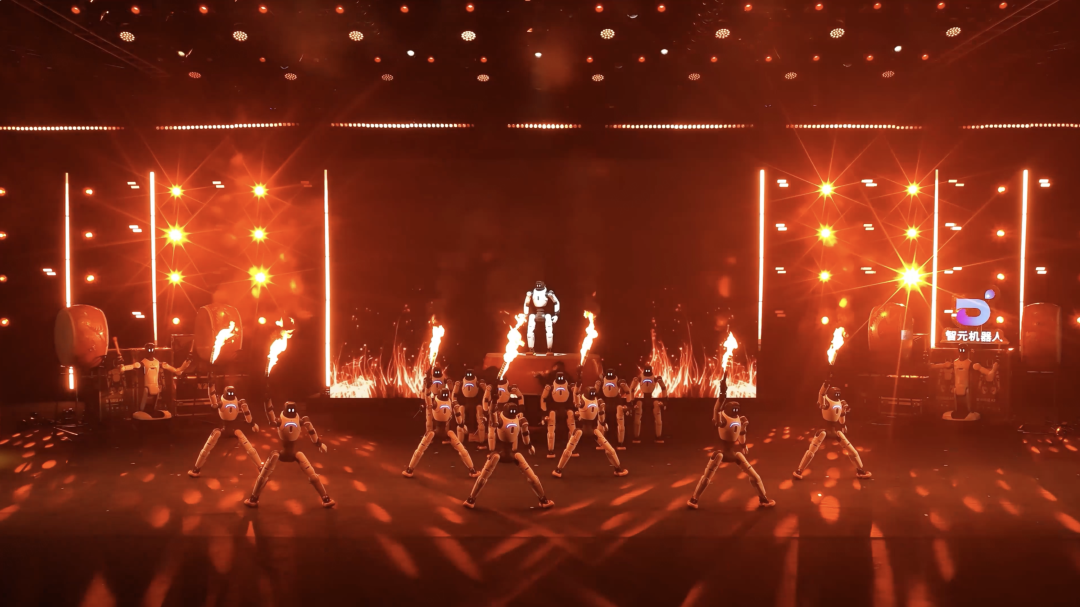 智元表示,本次晚会的流畅进行,主因智元背后的技术体系从底层的伺服控制、中台的群体调度算法到顶层的艺术编排软件已经实现了高度耦合与可靠运行。