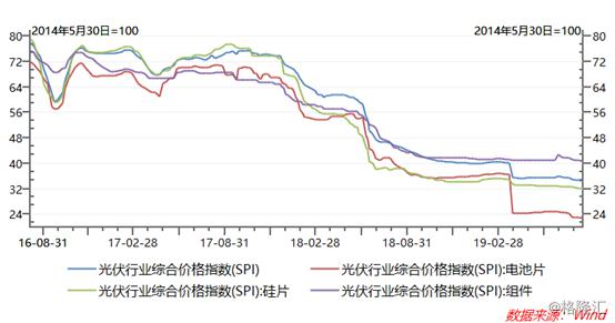 而另一方面,近几年来,光伏行业的上游晶硅、组件和电池片等主要材料价格持续呈下降趋势。而在过去两个月,光伏电池片价格更是已经连跌十周。