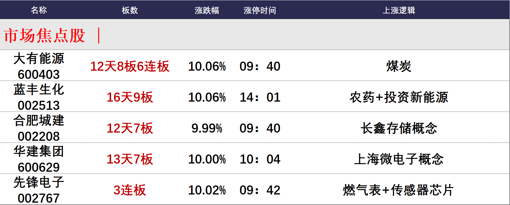 个股方面,全市场连续第二个交易日超4000只个股上涨,但连板股晋级率仅二成。昨5连板远大控股盘中一度跌超8%,昨4连板三孚股份跌停,安泰集团、睿能科技等也均有不同程度负反馈。少数高位股获资金抱团,合肥城建走出12天7板、华建集团走出13天7板。