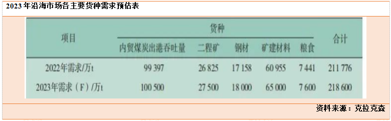 粮食方面,2023年国内玉米产量预计增速保持在1%~2%水平,沿海粮食需求保持刚性增长。