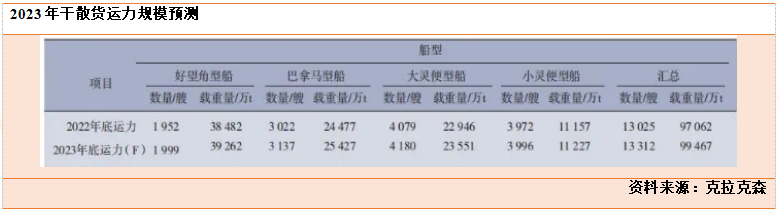 总体来看,在内贸煤炭需求放缓的背景下,我们下调了2023年沿海干散货运输需求,预计全年为21.86亿t,同比增长2.2%,增速较去年明显放缓。