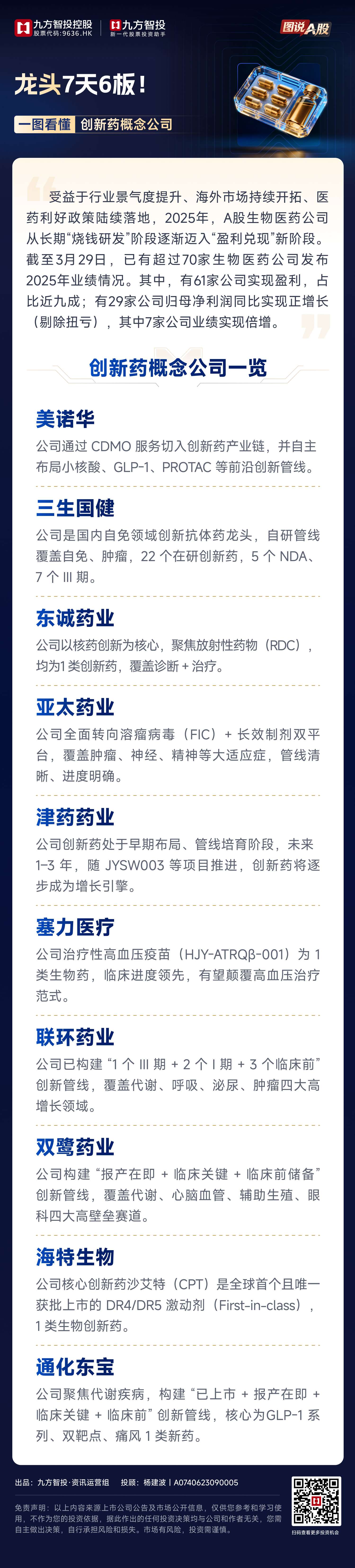 龙头7天斩获6个涨停!一图看懂创新药概念公司