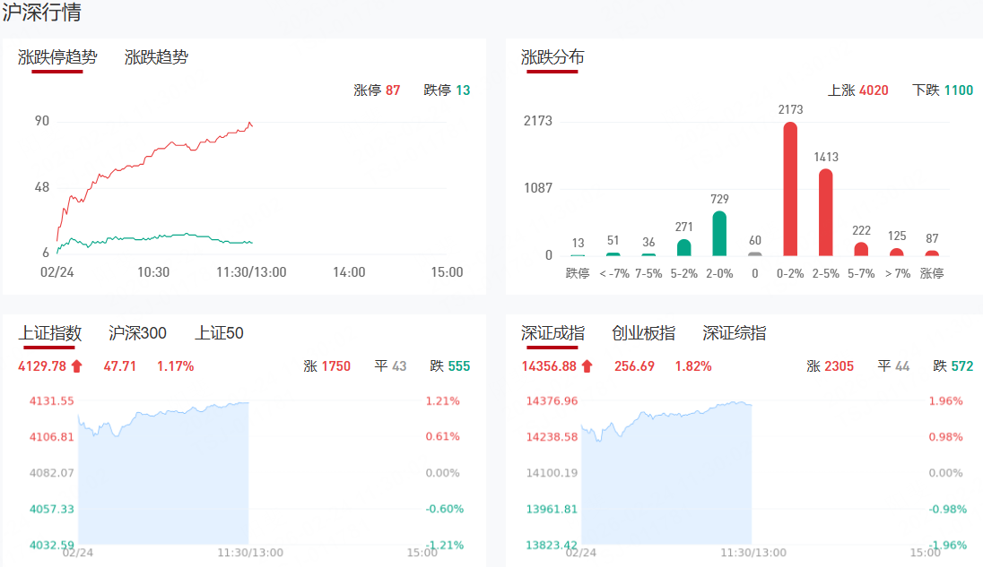 【九方午评】三大指数全部大涨 全市场超4200只个股上涨