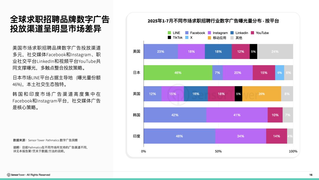 全球求职招聘品牌数字广告投放渠道呈明显市场差异