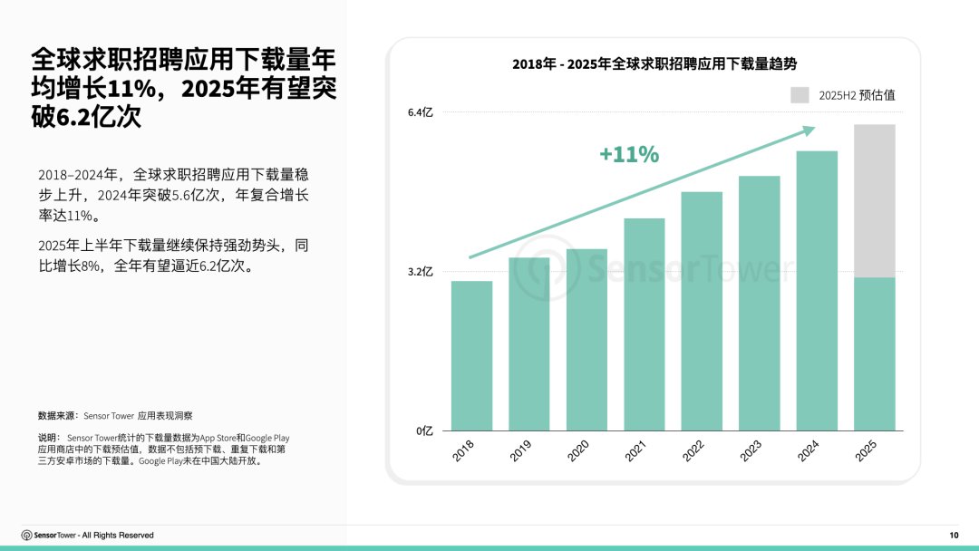 Sensor Tower:2025年全球求职招聘应用下载量有望逼近6.2亿次
