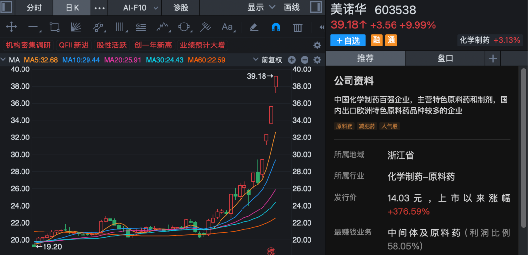 化学制药、减肥药、CXO概念、免疫治疗等板块也纷纷强势上攻,美诺华秒速涨停,实现6天5板,3月以来累计飙升逾75%;康弘药业、津药药业等批量涨停。