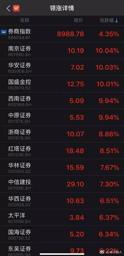 从热门板块上来看,大金融板块的上涨为大盘指数保驾护航。截至午间收盘,Wind券商指数上涨4.35%,南京证券、华安证券、国盛金控、中原证券涨停,浙商证券、红塔证券涨逾8%。其中,南京证券上演“三连板”。