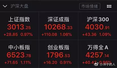 在券商等大金融板块带动下,今日A股市场继续走强,沪指重返3000点。截至午盘,上证指数上涨0.97%,报3013.25点;深证成指报10268.33点,上涨1.08%,创近8个月新高;创业板指上涨0.91%,报1796.5点,创年内新高。