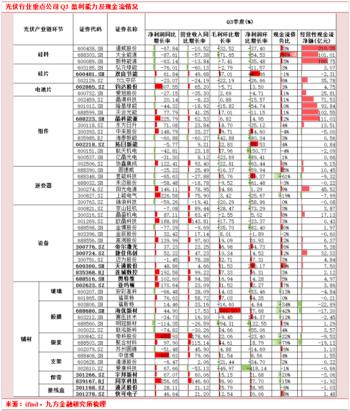 综上,光伏行业开启出清阶段,复苏还需等待。面对行业激烈的博弈,我们对行业的观察要重视企业现金流的变化,特别是再融资收紧的大环境下,光伏行业的技术突破还需要推进,手握现金的公司才有更大的弯道超车或保持领先的底气。