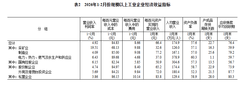 ——国家统计局工业司首席统计师于卫宁解读2026年1—2月份工业企业利润数据