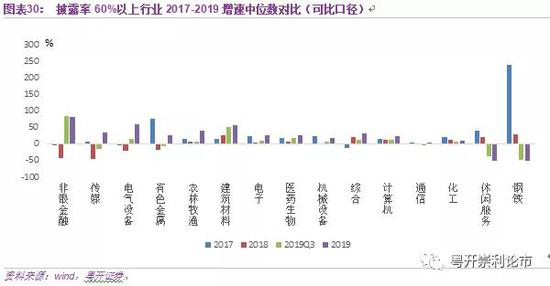 在披露率在60%以上的14个行业中,多数行业业绩增速相比2018年改善,仅休闲服务、化工两个行业出现恶化。