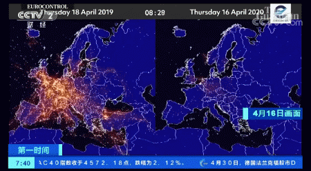 欧洲航空安全组织近日公布了一段动画,对今年4月与去年同期欧洲多地航班运行进行了对比。