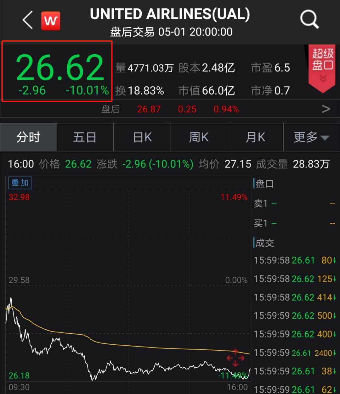 北京时间5月1日,美国最大的航空公司,美国联合航空控股(简称:美联航)盘前发布财报。