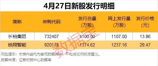 有2只新股今日可申购,分别为沪市主板的长裕集团,北交所的锐翔智能。