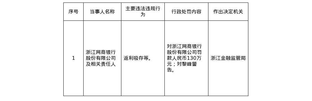 针对上述违法违规行为,浙江金融监管局对网商银行罚款人民币130万元。