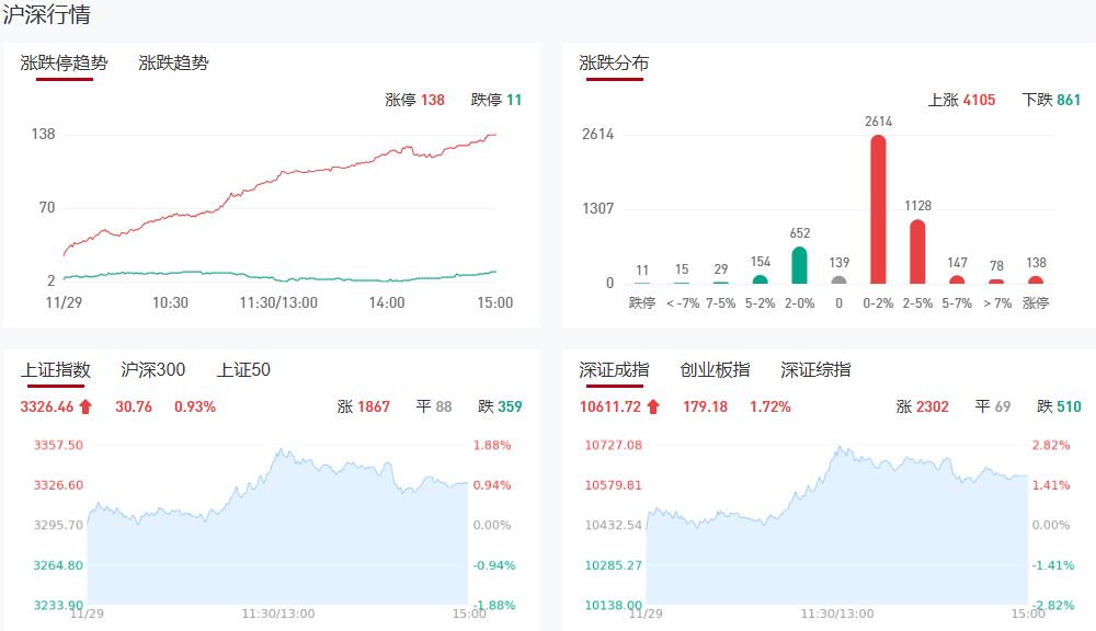 盘面上,大金融股集体走强带动指数拉升,锦龙股份、国盛金控、汇金科技、大智慧等涨停。机器人概念股再度爆发,拓斯达、三丰智能、巨轮智能、爱仕达等30余股涨停。大消费股表现活跃,电商、食品股领涨,若羽臣、跨境通、黑芝麻、桂发祥等涨停。总体上个股涨多跌少,全市场一共4290只个股上涨。