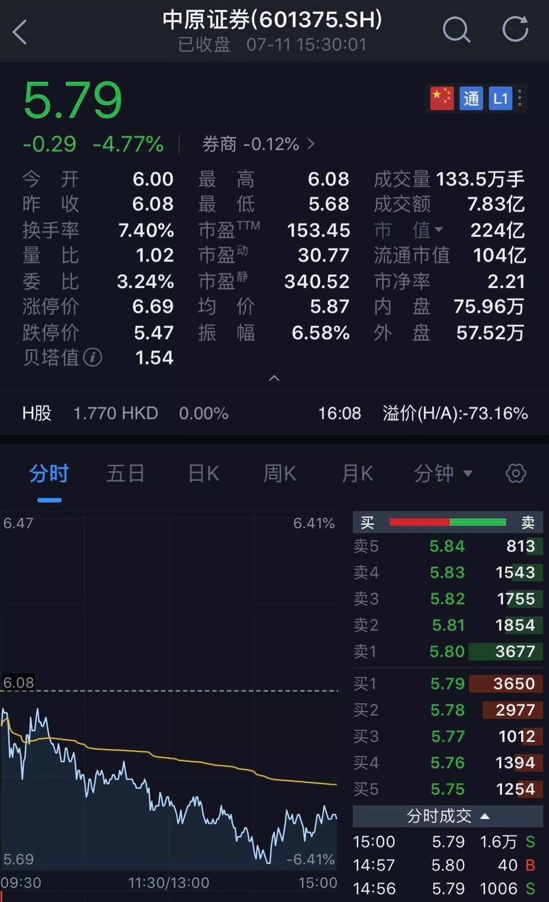 受消息影响,中原证券今天股价暴跌4.77%,市值没了11亿。