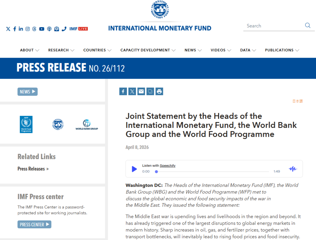 在一场关于战争的会议后发表的一份联合声明中,上述三个国际机构的负责人表示,沉重负担将主要落在世界最脆弱人群的身上,尤其是那些低收入、依赖进口的经济体中的民众。