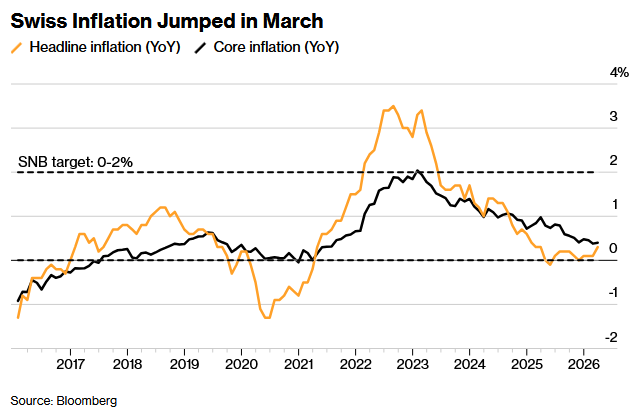 3月的CPI数据表明,瑞士法郎走强对进口成本及通胀形成的压制作用,正在被更高的能源价格所抵消,从而为瑞士央行提供了一定的政策缓冲空间。