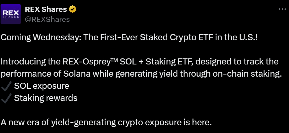 据悉,REX Shares与数字资管公司Osprey合作推出的Solana质押ETF,将持有Solana现货代币和相关基金,并部署部分代币进行质押以产生额外收益。