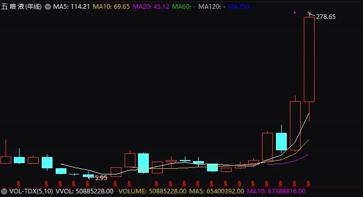 粗略来看,证金汇金押中了五粮液、中国中免等多只十倍股。数据显示,五粮液维稳期间最低价不到22元,最新价超过270元,复权后涨幅超过10倍。中国中免维稳期间最低价不到20元,最新价超过185元,8月份最高价超过240元,涨幅超过10倍。贵州茅台维稳期间最低价220元左右,最新价溢价率超过7倍。