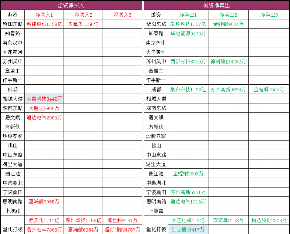 点评:上周四活跃的消费医药直接一日游,周五冲高就回落补跌了,电力这里由于有大游资在里面主控,所以走的比较强一些,量化跟游资在华电能源,华电辽能,晶科科技等里面抱团,其他更多的是被动跟风回落为主。