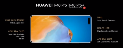 图:华为P40系列四曲面超窄边框打孔屏