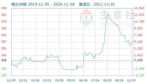 近日稀土指数大幅大涨,11月4日稀土指数为362点,继3日的大涨之后又上升了5点。