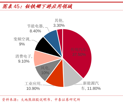 其中钕铁硼磁材是应用最为广泛的永磁体,钕铁硼也是轻稀土最大的下游市场。
