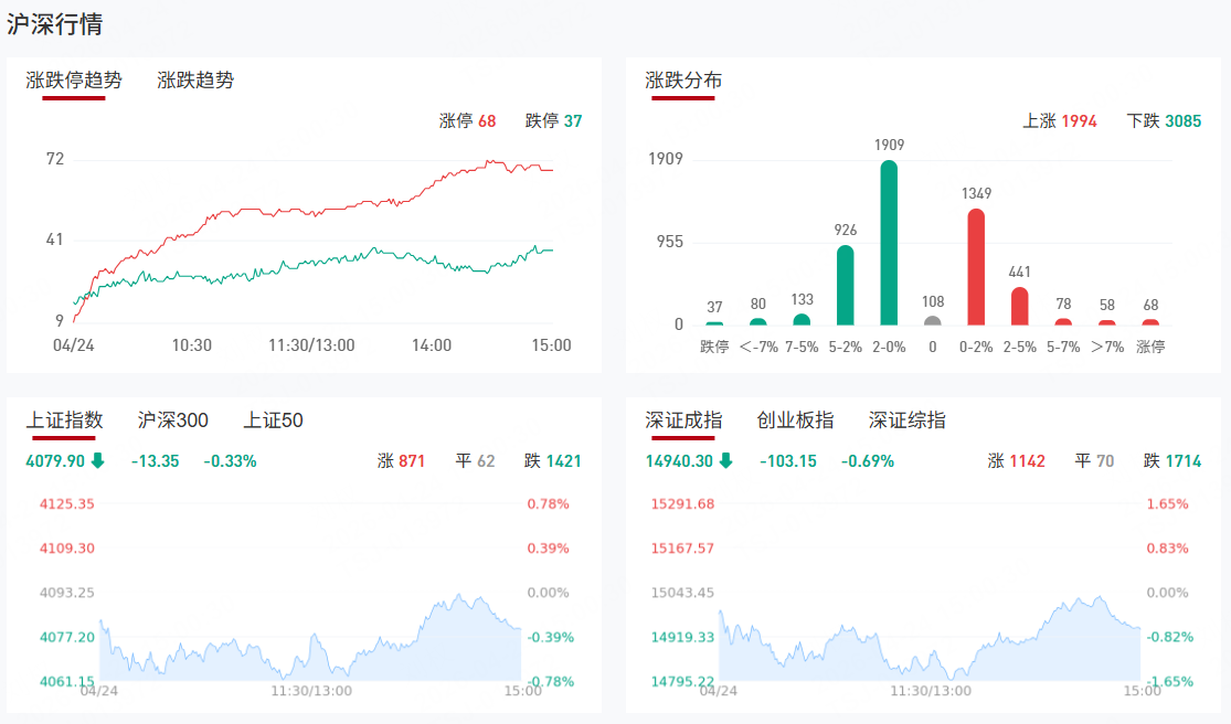 板块方面,锂电池产业链、芯片、业绩超预期等板块表现活跃,油气、影视院线、军工等板块表现落后。截至收盘,沪指跌0.33%,深成指跌0.69%,创业板指跌1.41%。