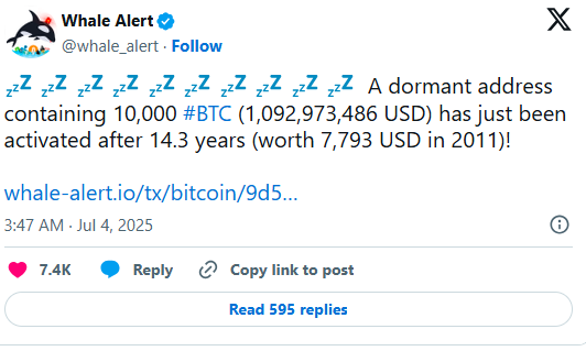 7800美元变成近11亿!比特币社区沸腾:沉寂14年的钱包苏醒了……