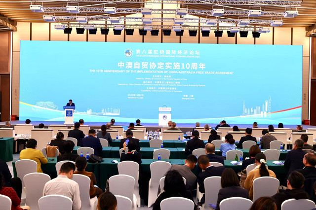 11月5日下午,第八届虹桥国际经济论坛“中澳自贸协定实施10周年”分论坛在国家会展中心(上海)举行。该论坛由商务部主办。