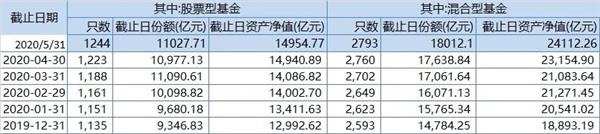 截至5月底,股票基金最新规模1.50万亿元,创下2015年7月以来新高;混合基金最新规模2.41万亿,超过今年4月的高点,连续两月创出历史新高。