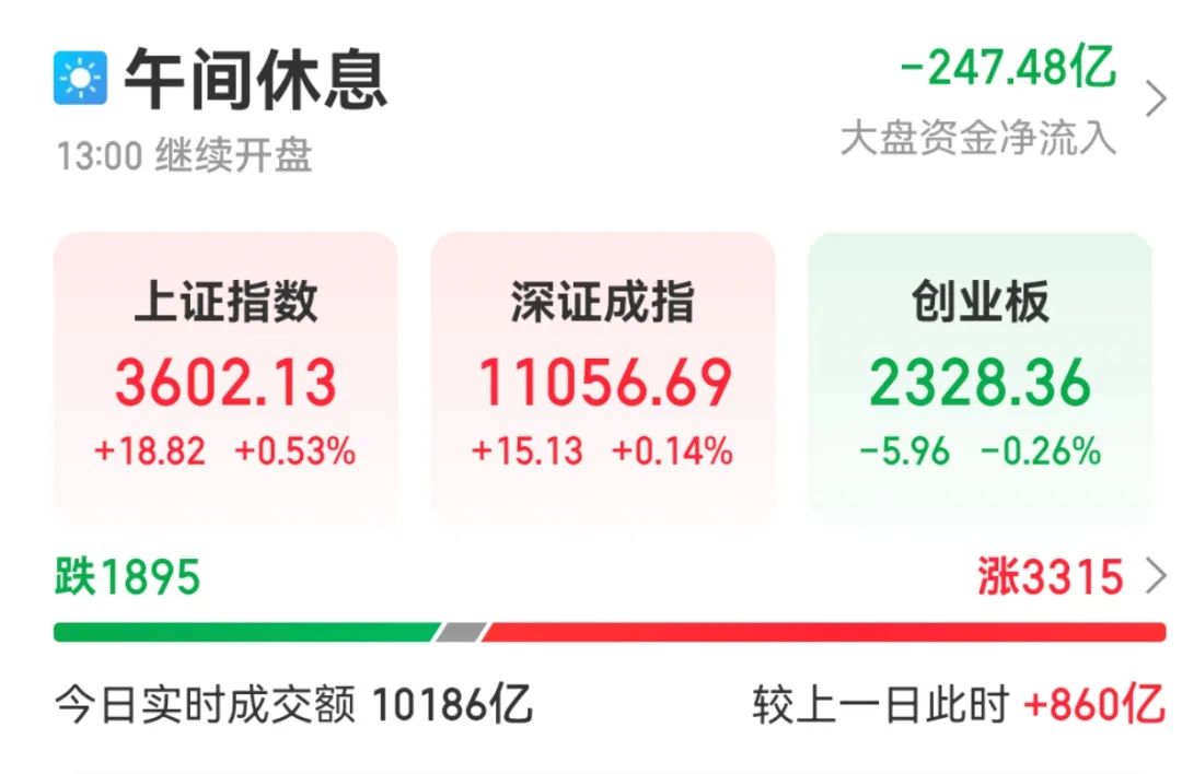 今天上午,上证指数再度站上3600点,全市场半日成交额近1.02万亿元,较昨日上午放量860亿元。