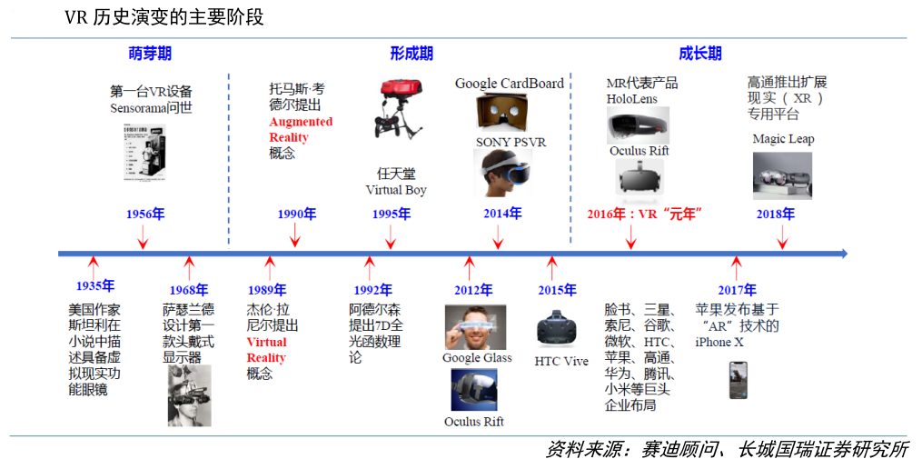 演变发展史大体上可以分为3个阶段:蕴涵虚拟现实思想的萌芽期;理论不断完善和应用产品逐步推出的形成期;多样化的产品蓬勃发展的成长期。
