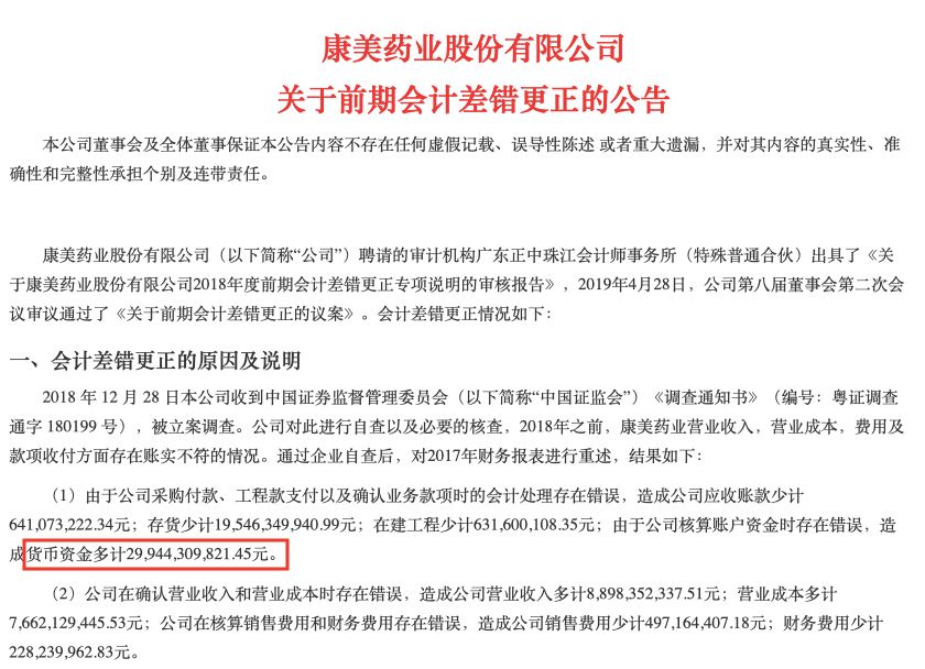 康美药业:300亿货币资金一夜蒸发