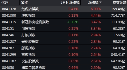 概念板块中,免税店板块、光刻胶板块、海南自贸港板块等涨幅居前。