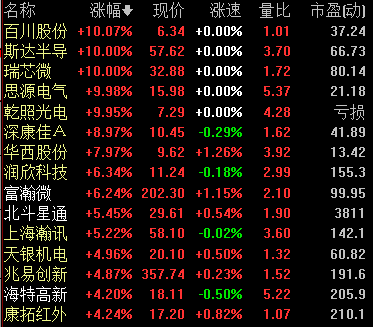2月20日开盘,芯片概念涨势强劲,截至发稿,百川股份、斯达半导、瑞芯微、思源电气等多股涨停,深康佳A、富含维、润欣科技等其余多股均有不同程度的拉升。
