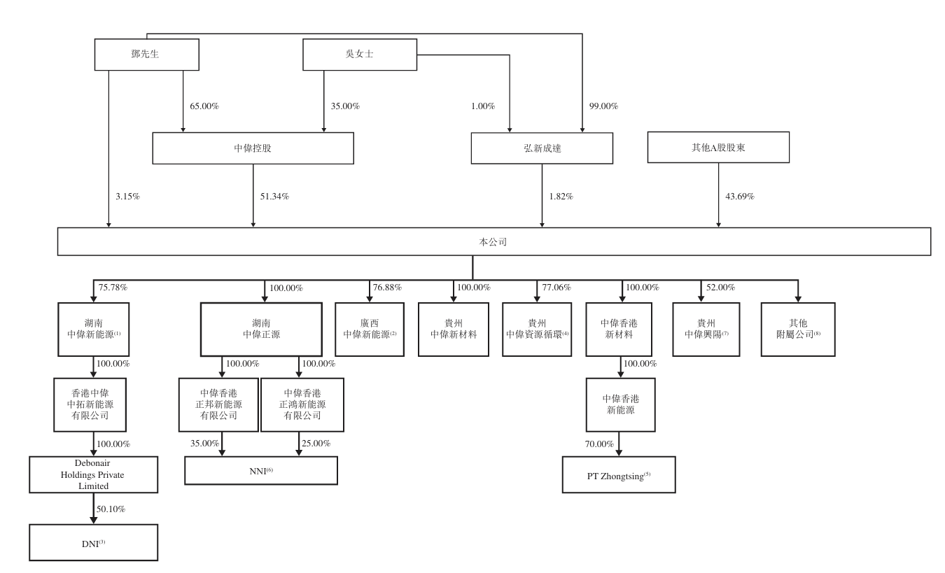 公司由中伟控股发起创建,已发展成为全球前驱体行业龙头