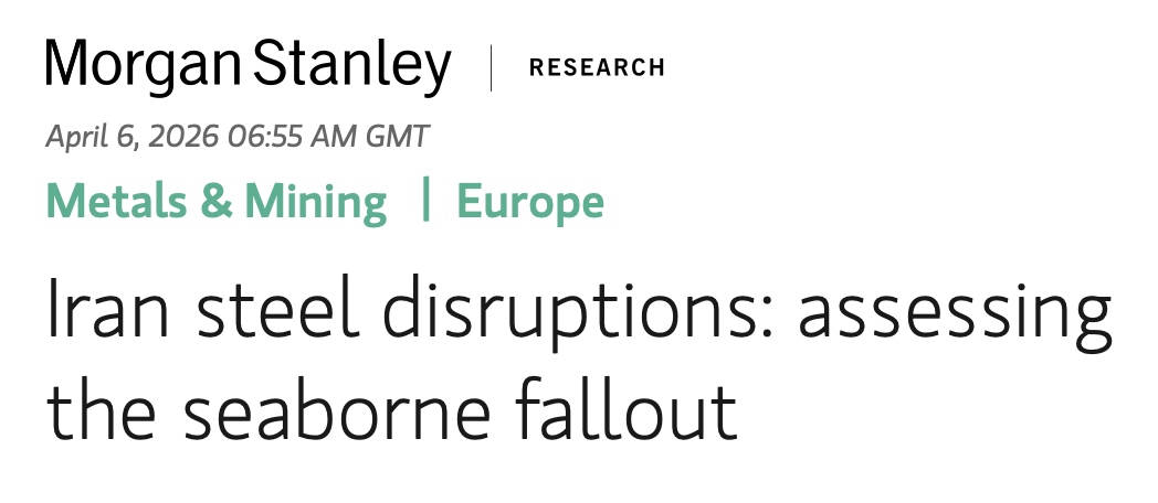 摩根士丹利在最新研报中表示,战争造成伊朗约1300–1500万吨/年炼钢产能受损,这将导致伊朗钢材及原料出口下降,中东及亚洲买家被迫寻找替代供应。